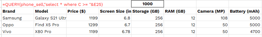 ( 2 ) =FILTER(customers, segment = "POSTPAID", data_usage > 2)