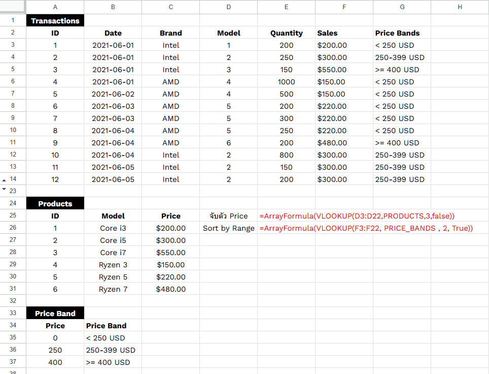 อีก 1 ตัวอย่างของ Vlookup เช่น เราต้องการจะแยกประเภทของสิ่งต่างๆเดี๋ยว Range ของข้อมูลเช่นการตัดเกรดต่าง หรือจัดประเภทของ Range ราคา Chipset